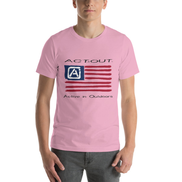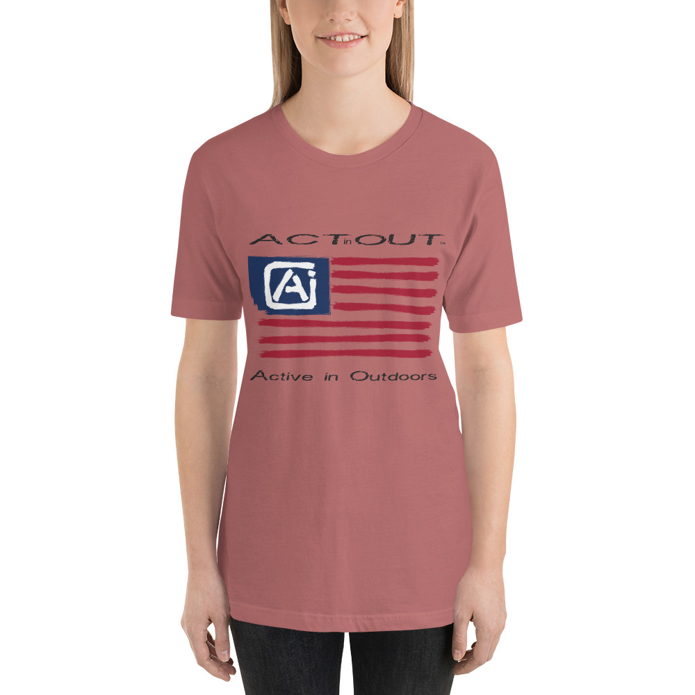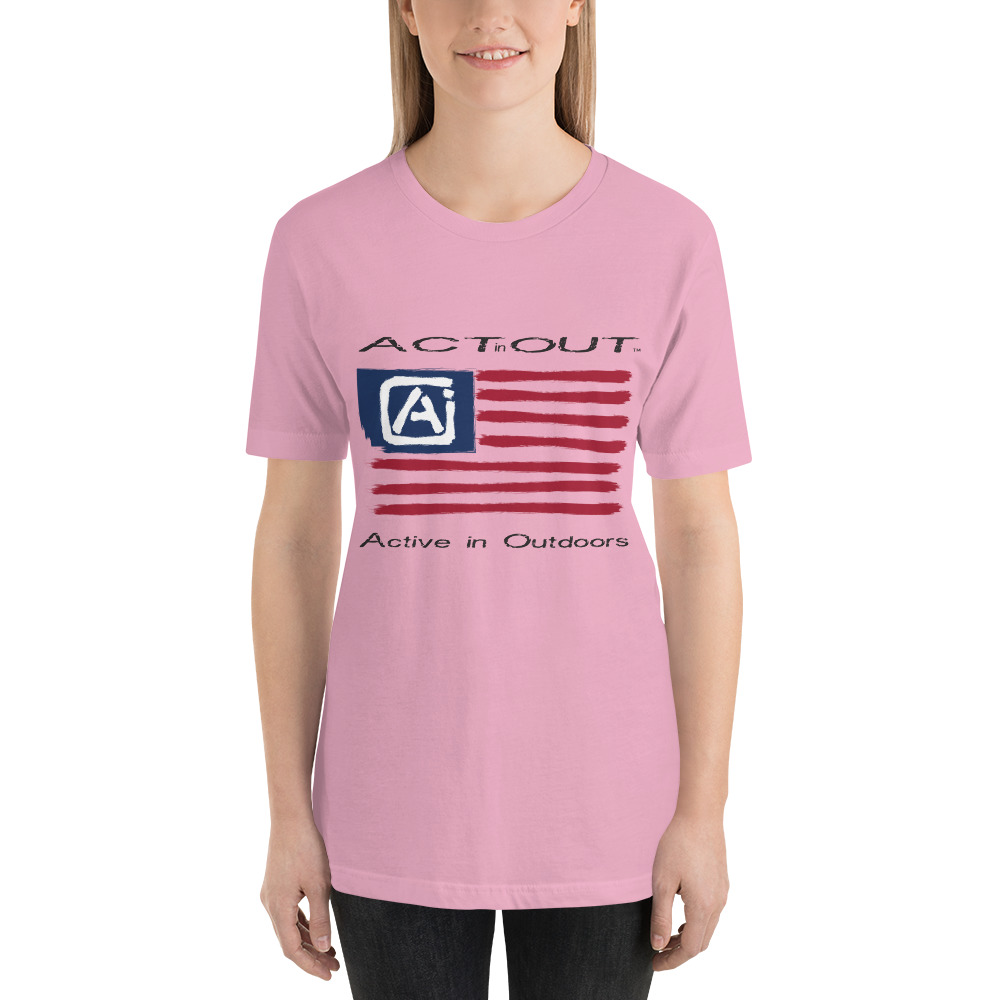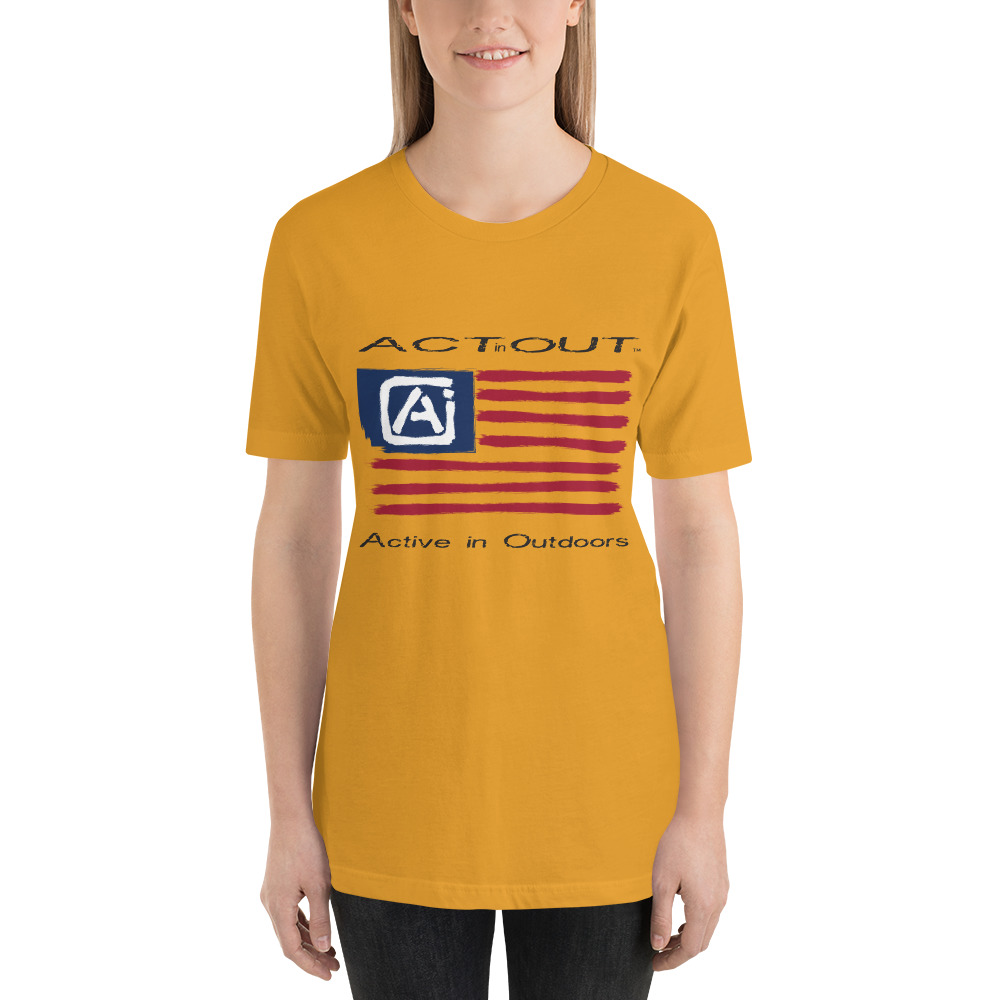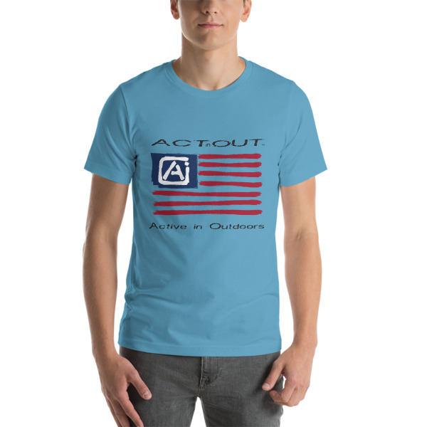 Express your patriotism and love of being Active in Outdoors with this ActinOut t-shirt featuring the American Flag and ActinOut verbiage and logo